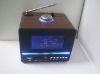 mini speaker 1.USB/SD/MMC card,U disc can be insert in this item to play 2.It can support any mobile-phone with U disc function,play MP3 format file in the DIM card 3.It can be used with ipod. 4.It can be used with Lap-top computer. 5.Have soft sounds 6.It's our new open model speaker 7.Have FM radio function 8.With LCD display 9.Can be charge directly with USB wire 10.Attached with USB,DC charge and remote Specifications Output 3W*2Frequency60Hz-20KHzFM87.5 108MHz(Selectable)Power supply6-9VSignal and noise radio of power amplifier≥85dbmaterialplasticdisplayLCD display Function: 1.USB/SD/MMC card support2.can be connecting with computer,MP3,MP4,cellpnoe,workman3.FM Radio support,Calender,Alarm clock,LCD display4.Attached with USB,DC charge and remote. Product size size:160*100*100mmweight:725g
